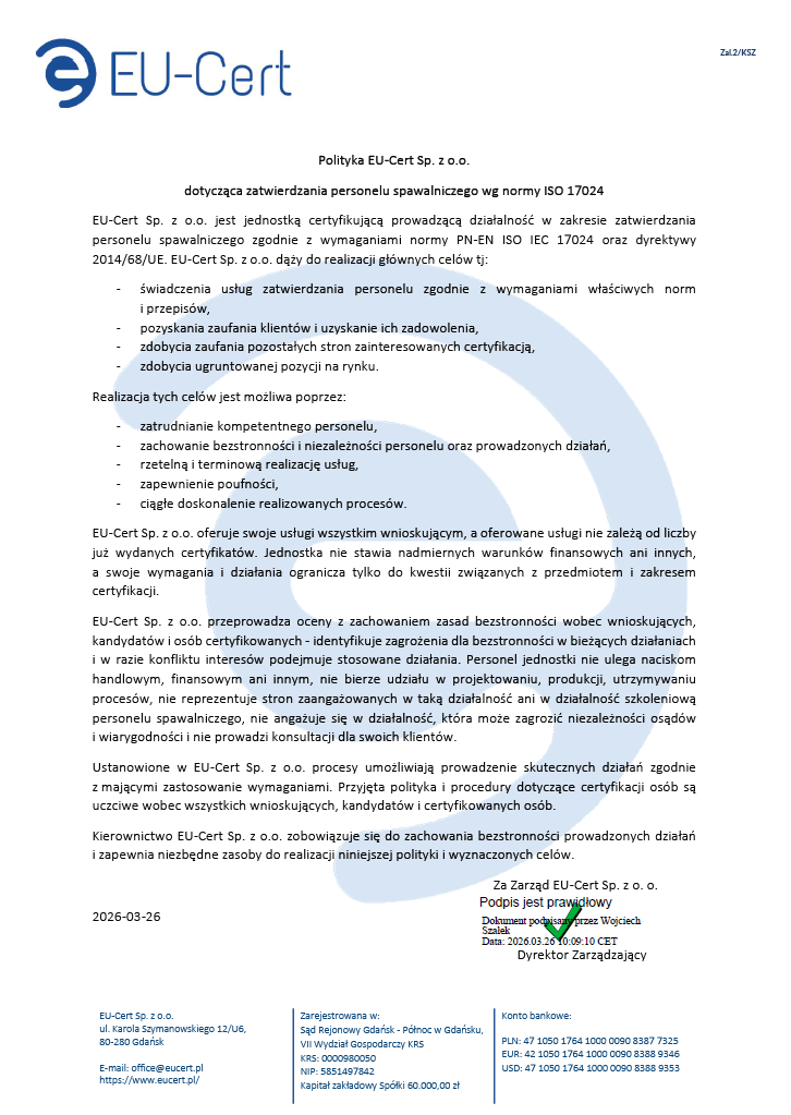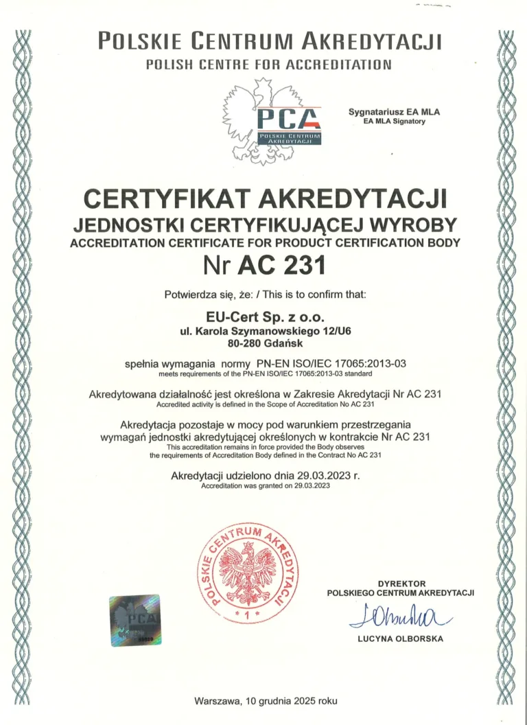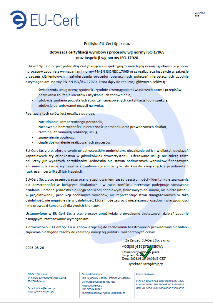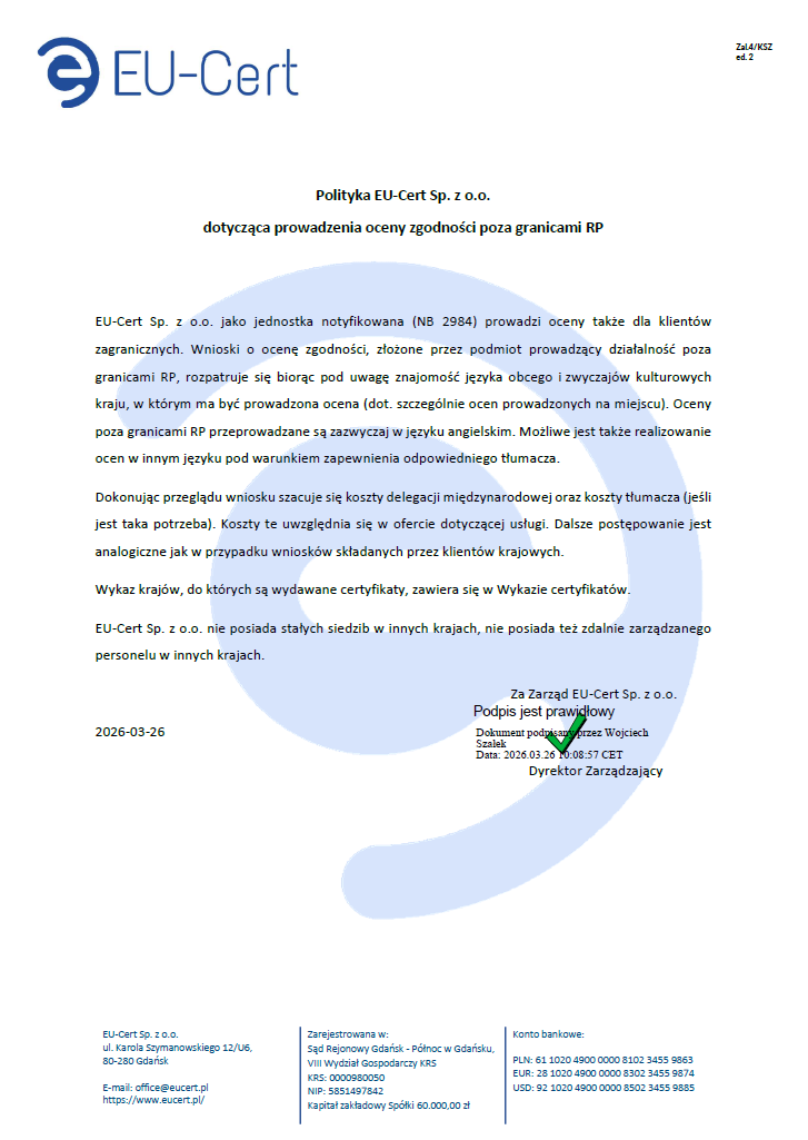 Unsere Stelle ist von der Europäischen Kommission notifiziert worden – Nr. NB 2984: